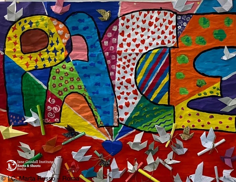 Nell’esperienza italiana dell’Istituto Jane Goodall educare alla pace e alla non violenza significa sviluppare una coscienza civile e ambientale, attraverso un approccio olistico che evidenzia le interconnessioni tra gli esseri umani e la natura. La protezione della biodiversità è intrinsecamente legata alla protezione dell’umanità, la pace non è solo assenza di guerra ma una pratica quotidiana da costruire con piccoli gesti, dialogo e ascolto attivo. Le e i giovani hanno la possibilità di esprimere la loro visione attraverso l'arte, la poesia e il recupero di materiali, trasformando la consapevolezza in azione concreta e possibile.