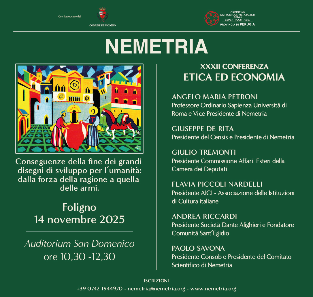 Nemetria promuove a Foligno (Perugia) la 32esima conferenza nazionale di etica ed economia.
