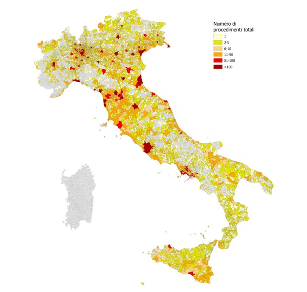 Quasi un Comune su due in Italia è oggi coinvolto in almeno un procedimento di bonifica ambientale. È il dato che emerge dal quarto rapporto Ispra “Lo stato delle bonifiche dei siti contaminati in Italia”, che fotografa una situazione ormai strutturale: al primo gennaio 2024 risultano censiti 38.556 procedimenti complessivi, di cui 16.365 ancora in corso e 22.191 conclusi. In termini territoriali, significa che 3.619 Comuni italiani, pari al 46% del totale, ospitano almeno un sito potenzialmente contaminato sottoposto a procedura amministrativa. Un fenomeno che non riguarda più soltanto aree industriali storiche o grandi poli produttivi, ma si estende anche a piccoli centri e contesti urbani ordinari, riflettendo decenni di utilizzo del suolo, attività produttive dismesse e pratiche di gestione ambientale poco adeguate.