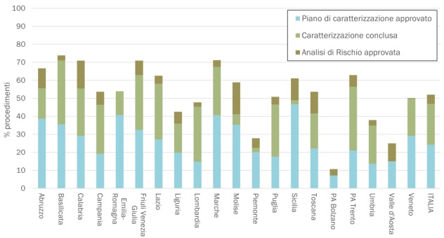 Un elemento centrale del Rapporto riguarda il significato stesso di “procedimento di bonifica”. L’avvio di una procedura, infatti, non implica automaticamente che il sito debba essere risanato. Nella maggior parte dei casi si tratta di percorsi di accertamento, analisi e valutazione del rischio. I dati Ispra mostrano che nel 70% dei procedimenti non si rende necessario alcun intervento diretto, perché le concentrazioni degli inquinanti risultano compatibili con gli usi previsti del suolo o non presentano rischi per la salute e l’ambiente. Solo nel restante 30% dei casi è stato invece necessario avviare vere e proprie operazioni di bonifica o di messa in sicurezza. Attualmente sono 3.243 i procedimenti in fase di intervento, con 2.601 cantieri attivi e 642 interventi già conclusi ma non ancora certificati dalle autorità competenti, a dimostrazione della complessità tecnica e amministrativa che caratterizza questi percorsi.