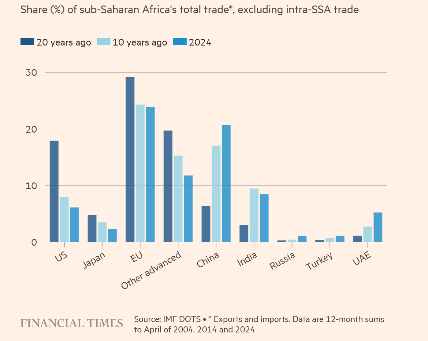 Nell'ambito di questo rinnovato interesse per l’Africa, la Repubblica popolare cinese è stato sicuramente uno dei Paesi più attivi negli ultimi anni: nel 2003 solo 18 Paesi commerciavano più con la Cina che con gli Stati Uniti. Vent’anni dopo il numero è salito a 52. Dopo aver stanziato ingenti finanziamenti per la costruzione di infrastrutture, come ferrovie e autostrade, attraverso la Belt and road initiative, la Cina sta ora ridimensionando il suo impegno finanziario a causa dei conflitti interni e della crisi del debito di alcuni Stati.